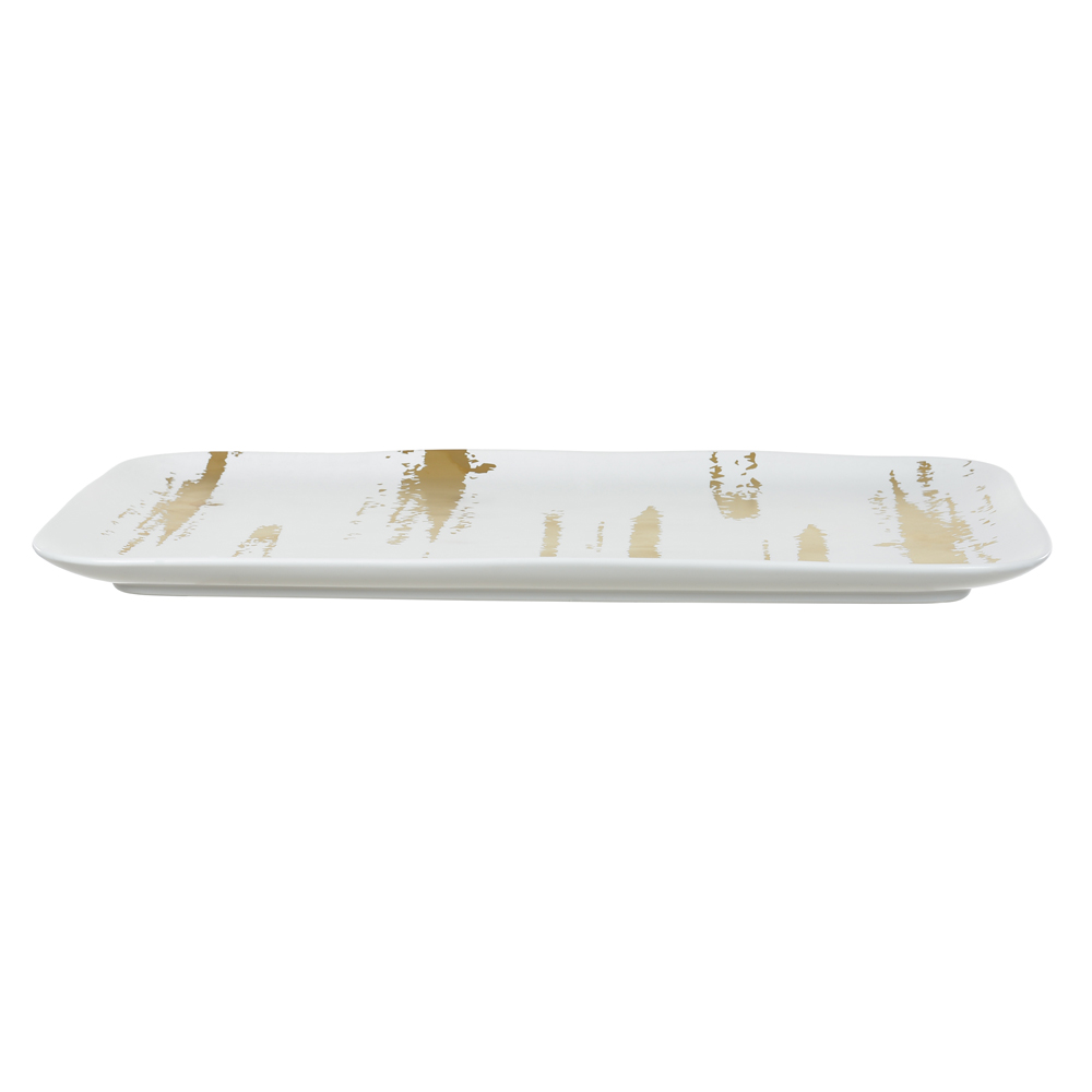 BANDEJA DECORATIVA PORCELANA (BRANCO DOURADO) 2,5X40X22,2cm
