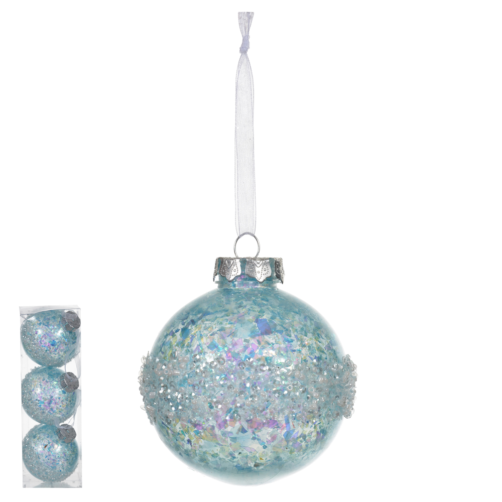 BOLA DECORADA NATAL C/3 UND PVC (AZUL) 8cm
