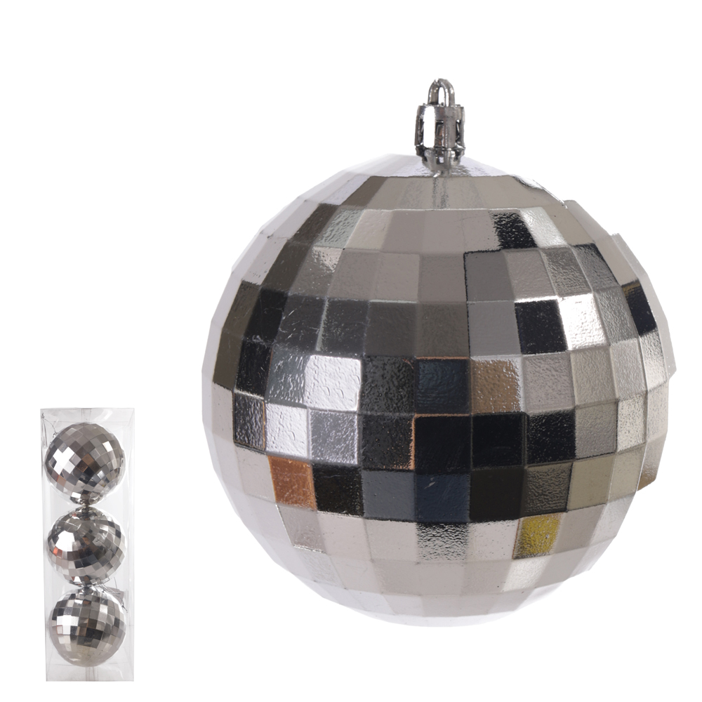BOLA DECORADA NATAL C/3 UNID (PRATA) 10cm