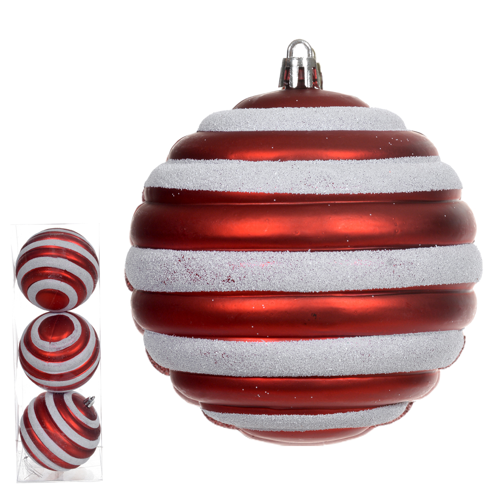 BOLA DECORADA NATAL NO PVC C/3 UND (VERMELHO BRANCO) 10cm