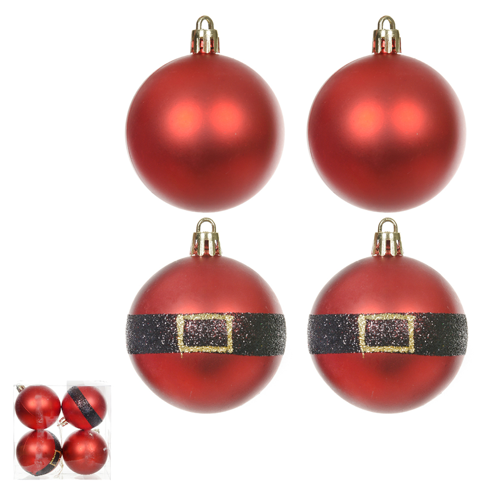 BOLA DECORADA NATAL NO PVC C/4 UND (VERMELHO) 6cm