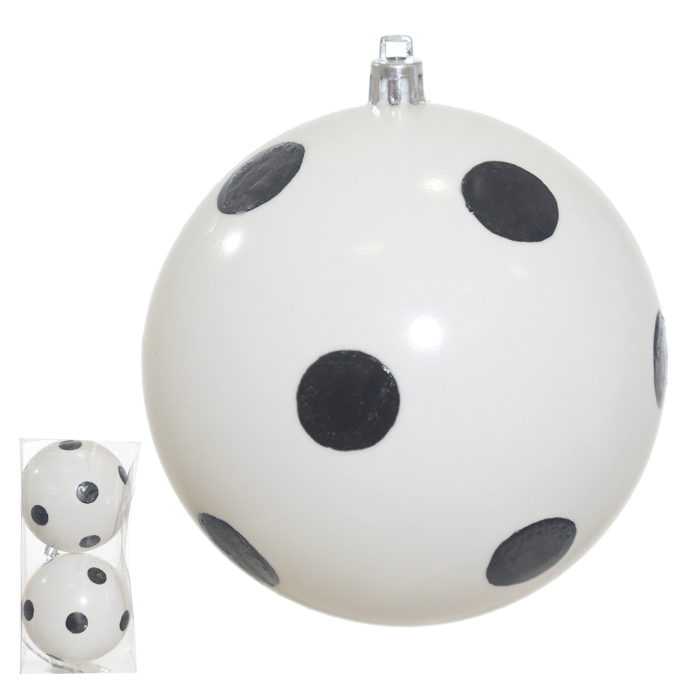 BOLA NATAL DECORADA NO PVC C/2 UND (BRANCO PRETO) 10cm