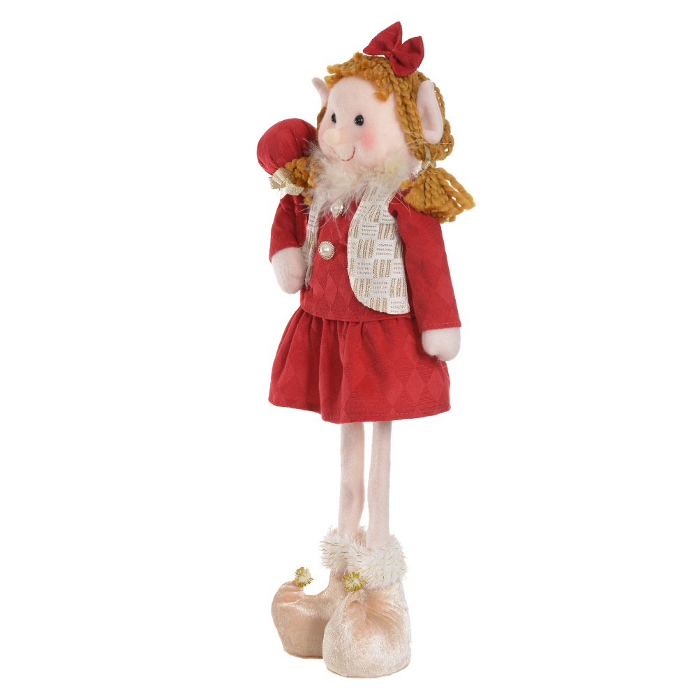 BONECO NATAL ELFO MENINA (VERMELHO DOURADO) 48cm
