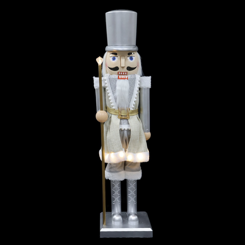 BONECO NATAL QUEBRA NOZES C/LED E SOM - 8 MUS (PRATA DOURADO) 80cm