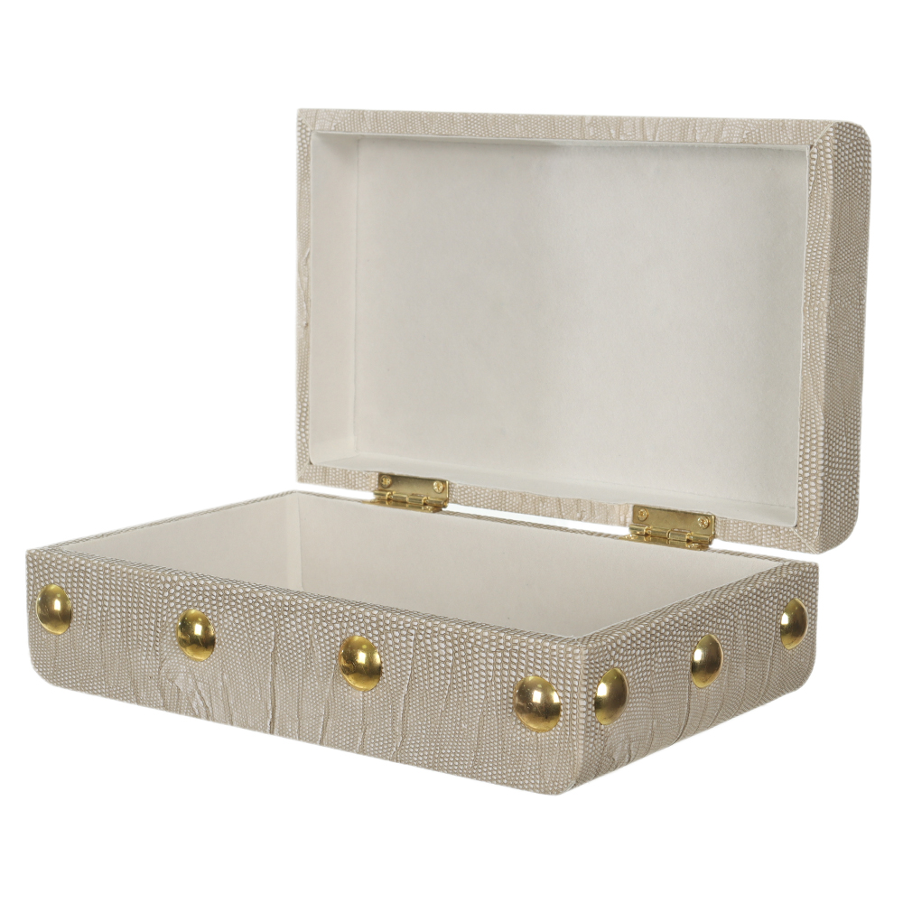 CAIXA DECORATIVA MDF COM REVEST PU DOTS (CINZA) 24X15X8cm