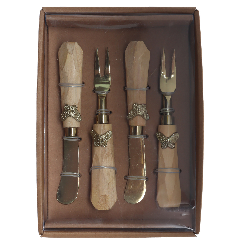CJ ESPATULA E GARFO ACO INOX 15,24cm C/4 PCS BORBOLETA (DOURADO)