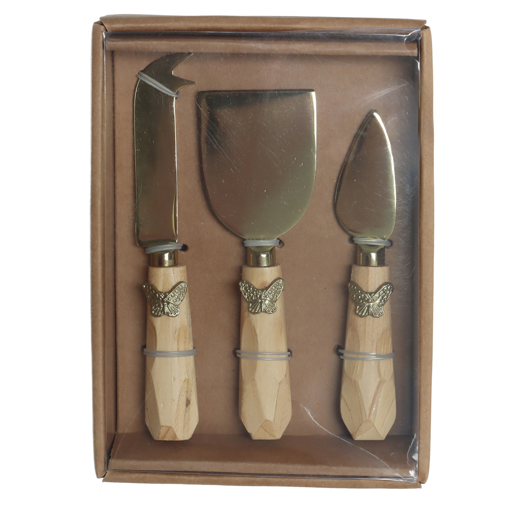 CJ FACAS P/ QUEIJO ACO INOX 17,14cm C/3 PCS BORBOLETA (DOURADO)