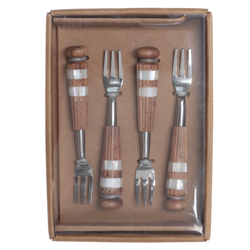 CJ GARFOS ACO INOX 14,6cm C/4 PCS MAD ACACIA E MADREPEROLA (PRATA)