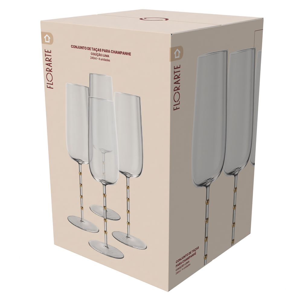 CJ TACA CHAMPANHE BORO 240ml 22,5X7cm C/4 PCS LUMA (TRANSPARENTE)