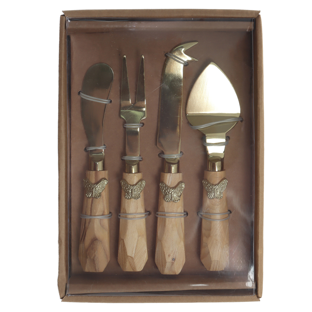 CJ TALHERES QUEIJO ACO INOX 17,78cm C/4 PCS BORBOLETA (DOURADO)