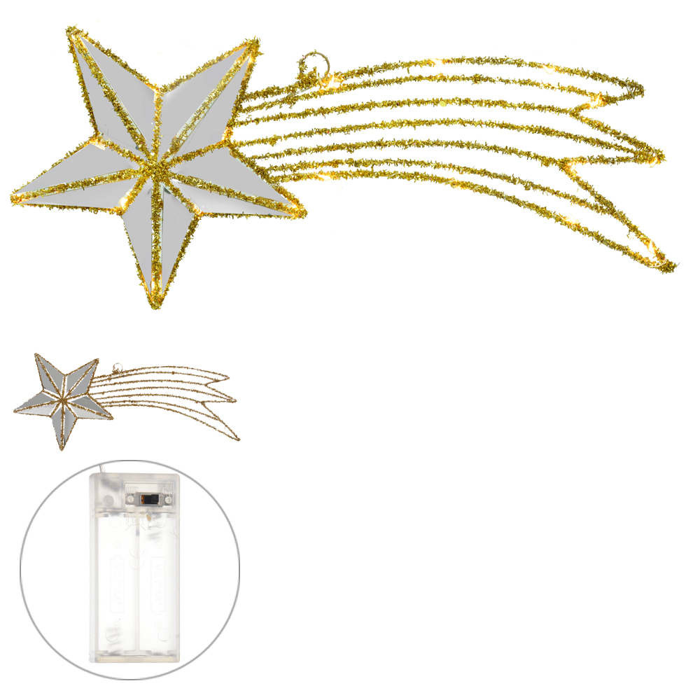 ENFEITE NATAL ESTRELA ESPELHADA C/LED (DOURADO) 25X56cm