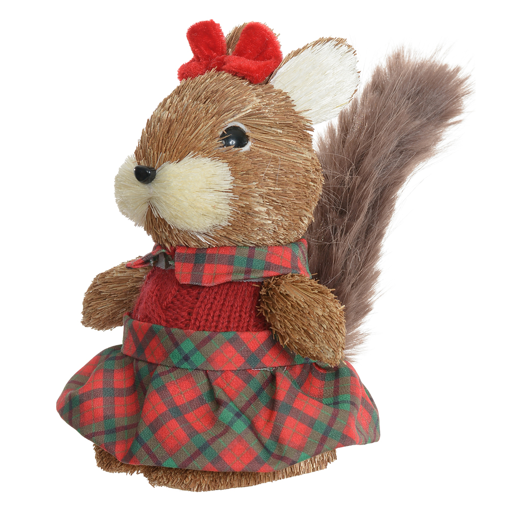 ESQUILO NATAL MENINA PALHA EM PE (VERMELHO VERDE) 19X13cm