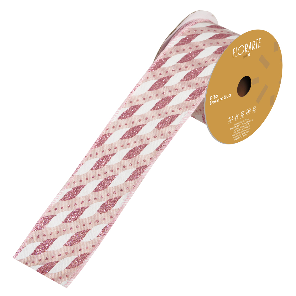 FITA ARAMADA LINHO C/ GLITTER C/COSTURA (BRANCO ROSA) 6,3cmX9,14m