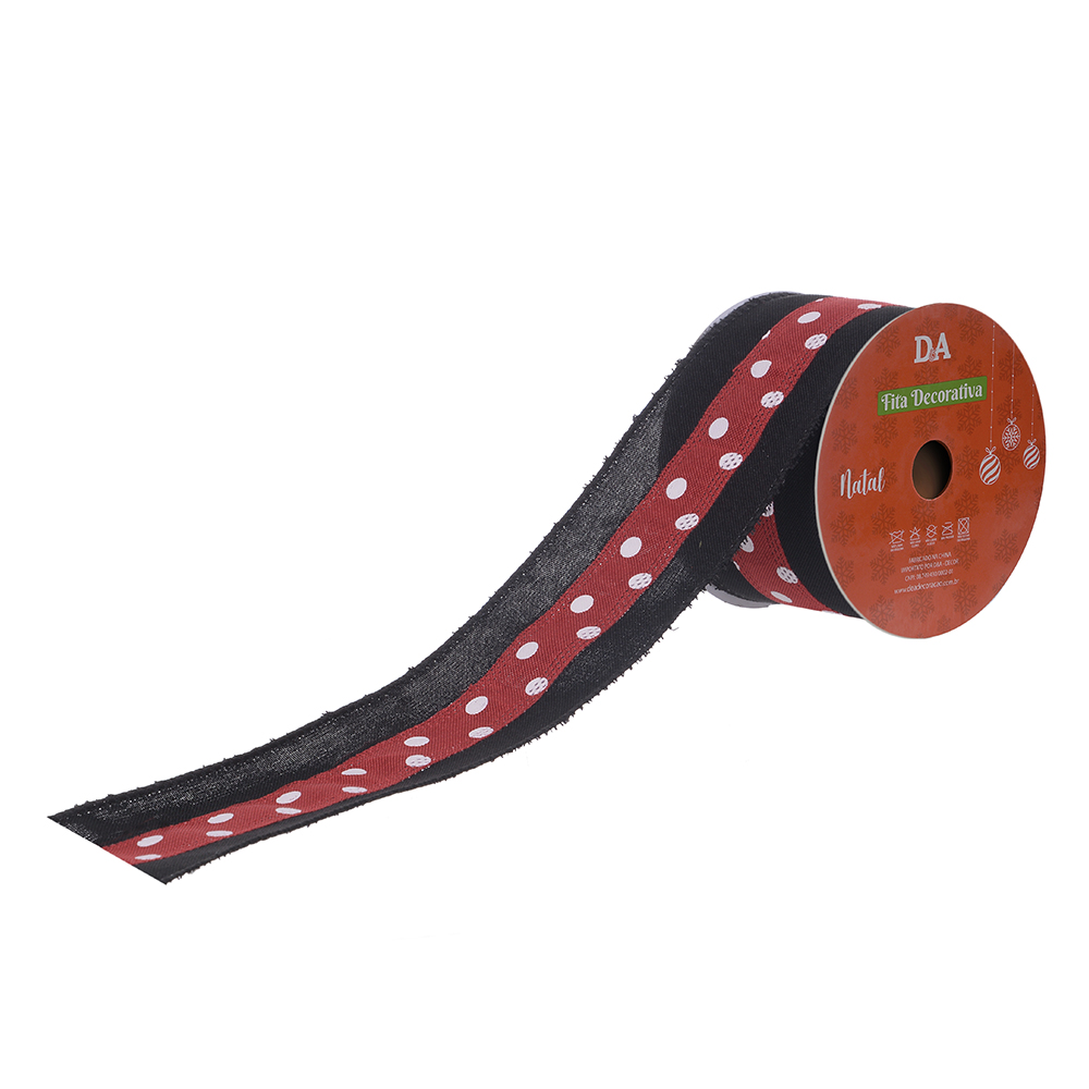 FITA ARAMADA LINHO C/COSTURA (PRETO BRANCO VERMELHO) 6,3cmX9,14m