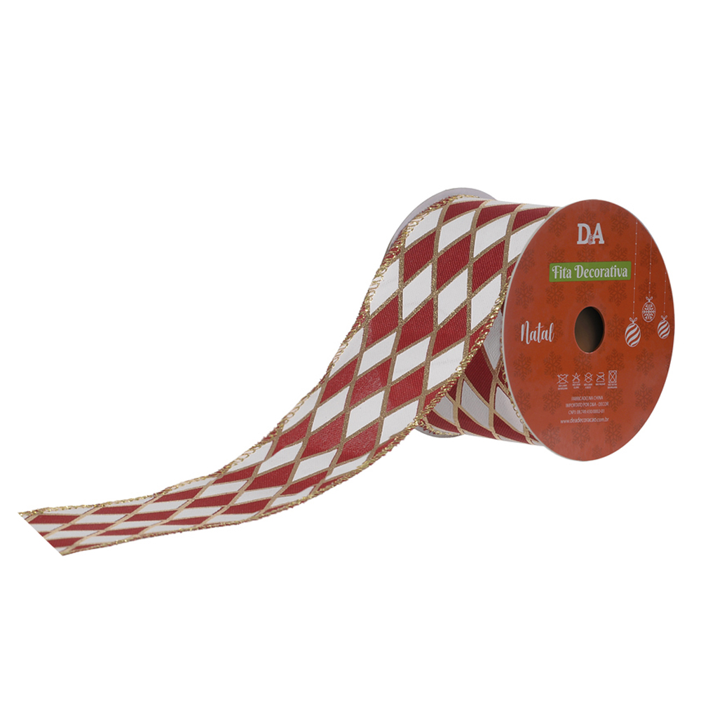 FITA ARAMADA LINHO C/COSTURA (VERMELHO BRANCO) 6,3cmX9,14m