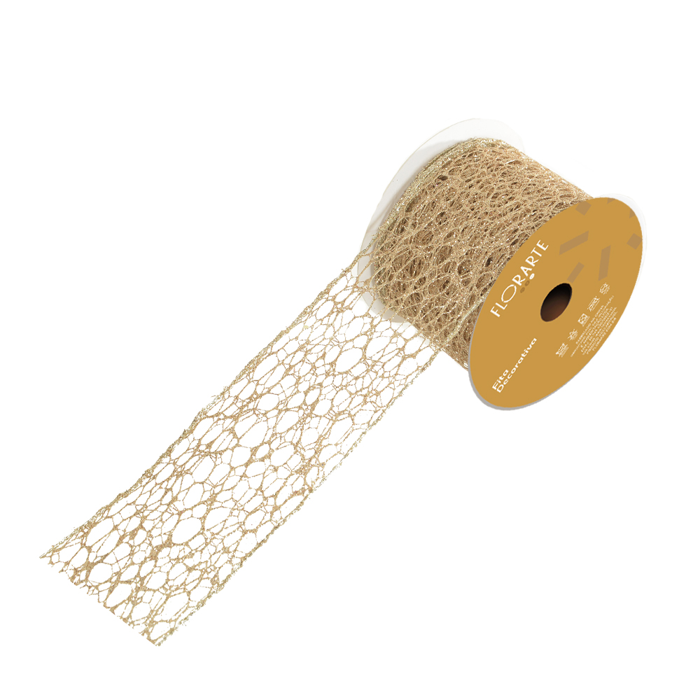 FITA ARAMADA TELA C/ GLITTER C/COSTURA (CHAMPANHE) 6,3cmX9,14m