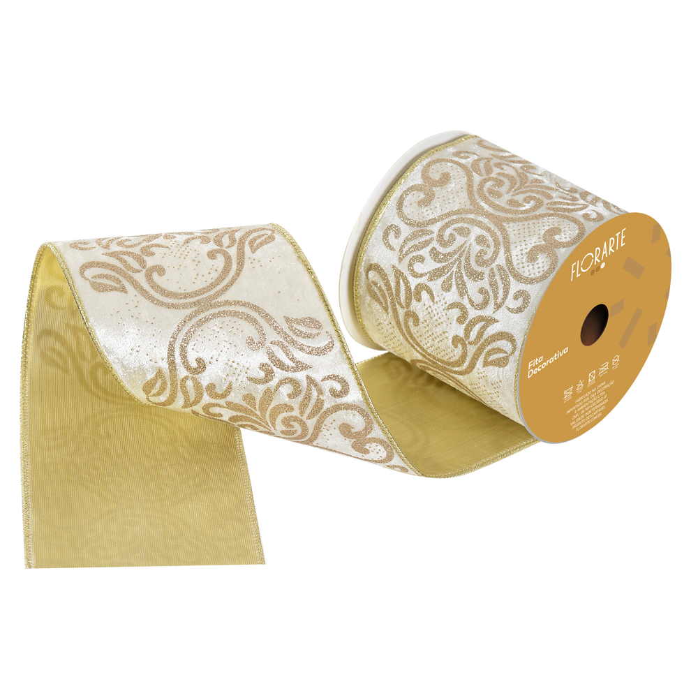 FITA ARAMADA VELUDO DUPLA FACE C/COSTURA (OFF WHITE CHAMPANHE) 10cmX5m