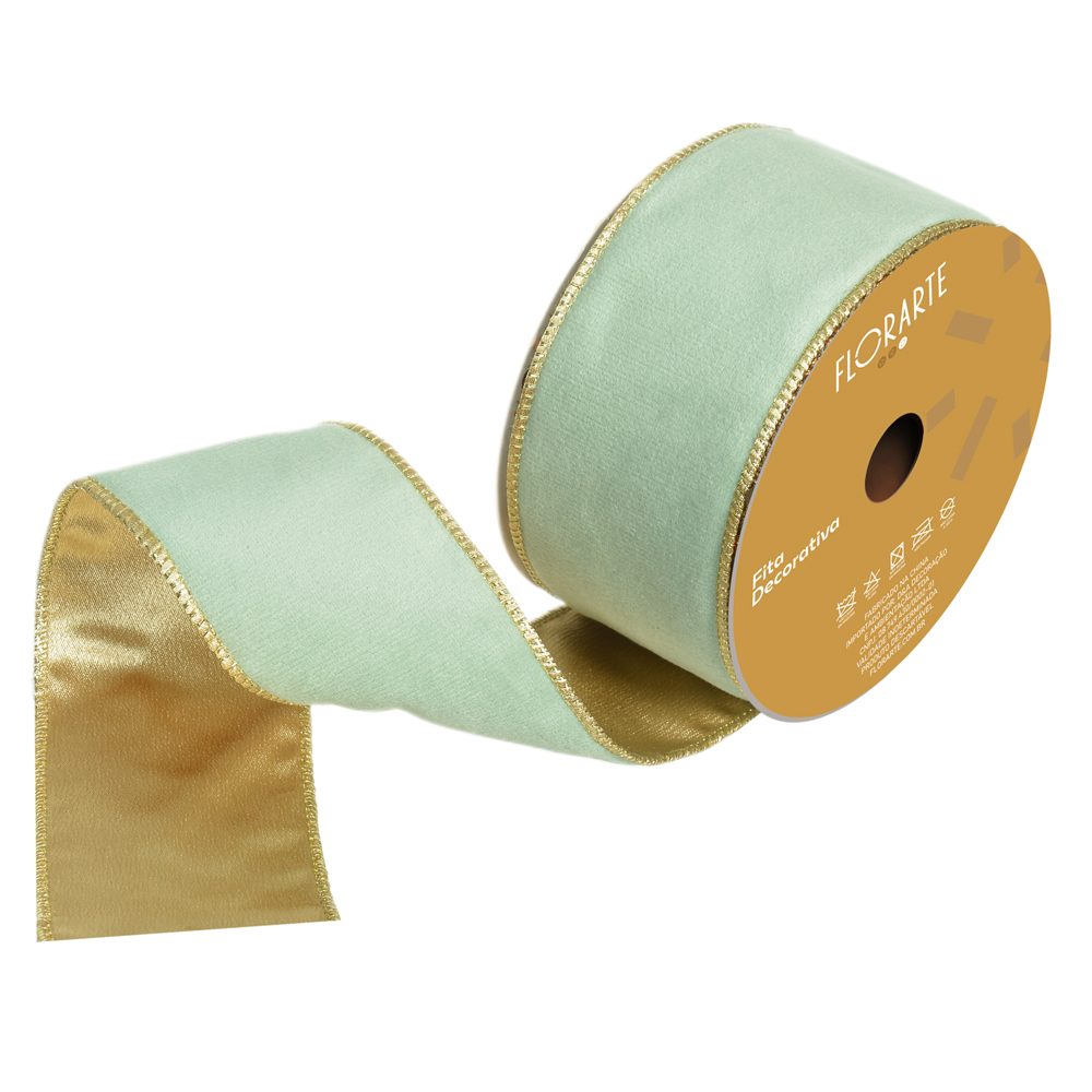 FITA ARAMADA VELUDO DUPLA FACE C/COSTURA (VERDE CHAMPANHE) 6,3cmX9,14m