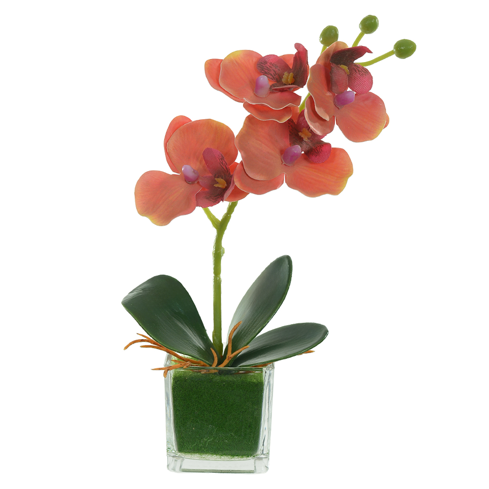 H.ORQUIDEA PHALAENOPSIS REAL TOQUE C/VASO DE VIDRO X4 (LARANJA) 23cm
