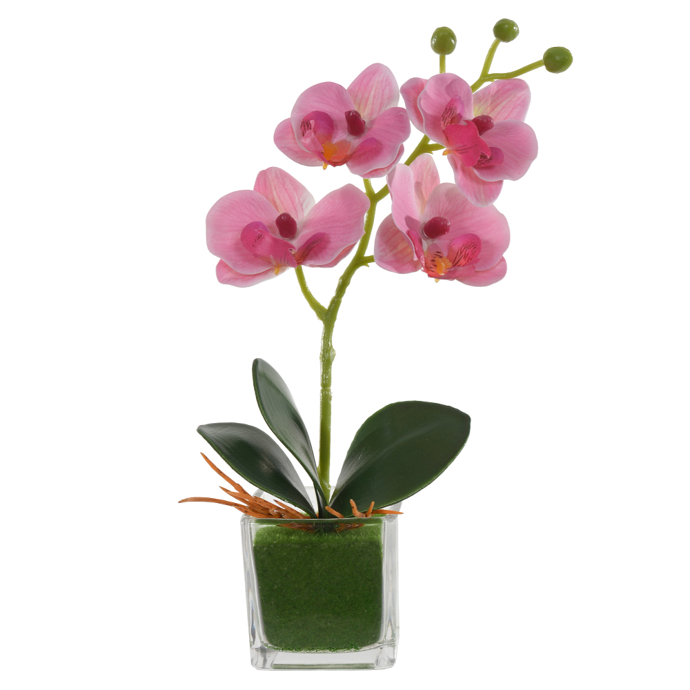 H.ORQUIDEA PHALAENOPSIS REAL TOQUE C/VASO DE VIDRO X4 (ROSA) 23cm