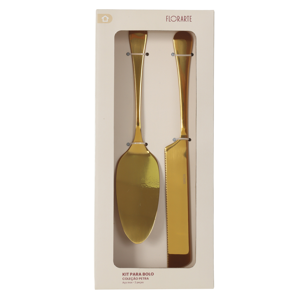 KIT PARA BOLO ACO INOX C/2 PCS PETRA (DOURADO)