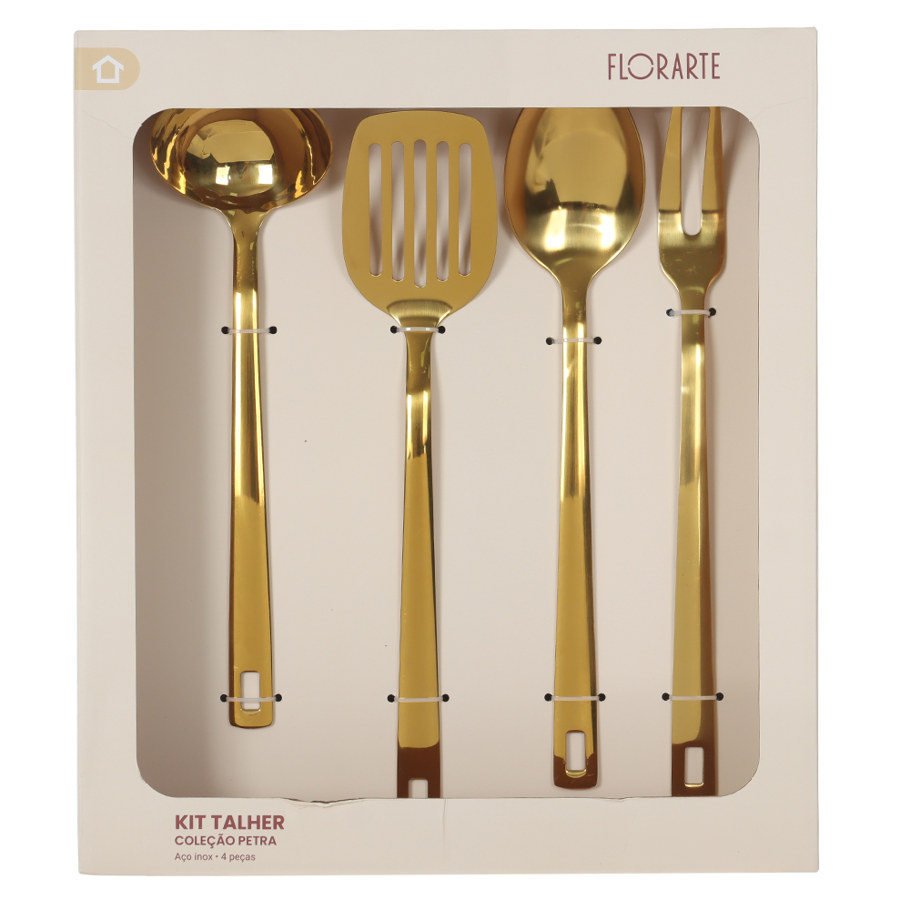 KIT TALHER SERVIR ACO INOX C/4 PCS PETRA (DOURADO)