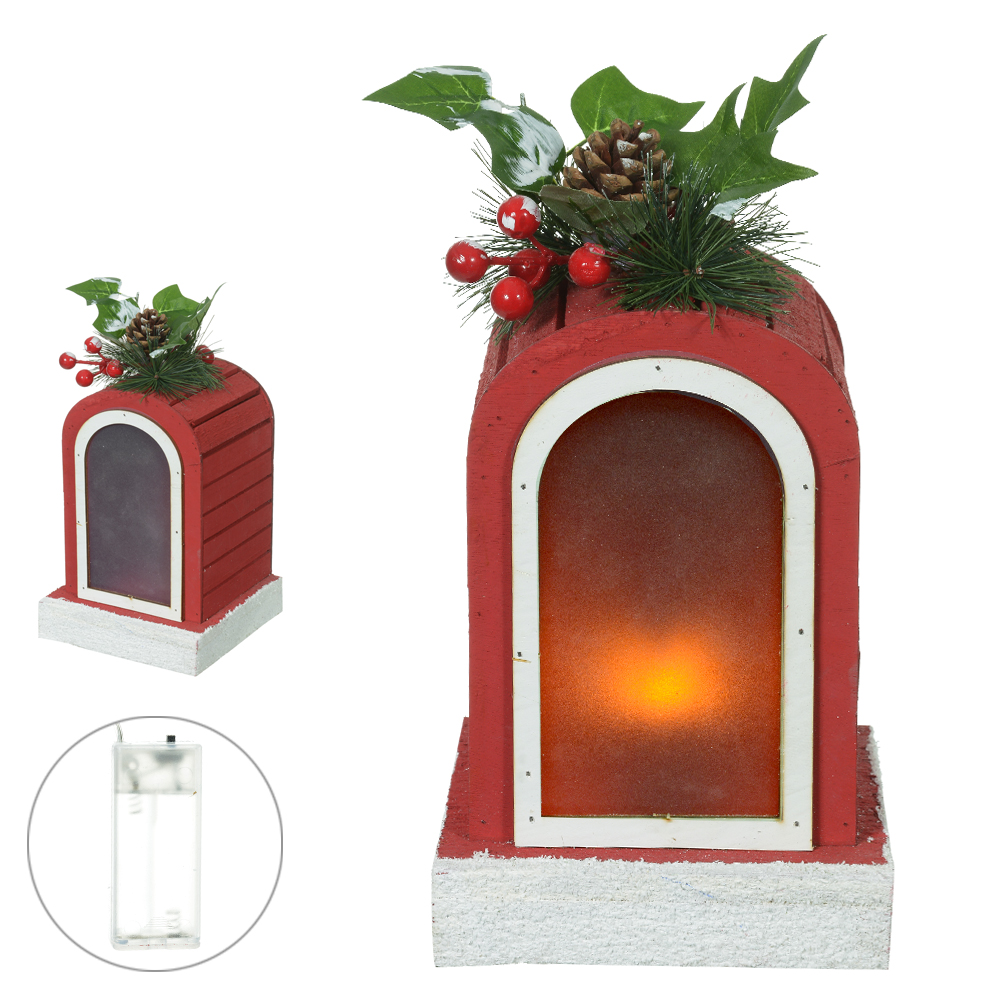 LANTERNA DECORATIVA C/LED 27cm (VERMELHO)