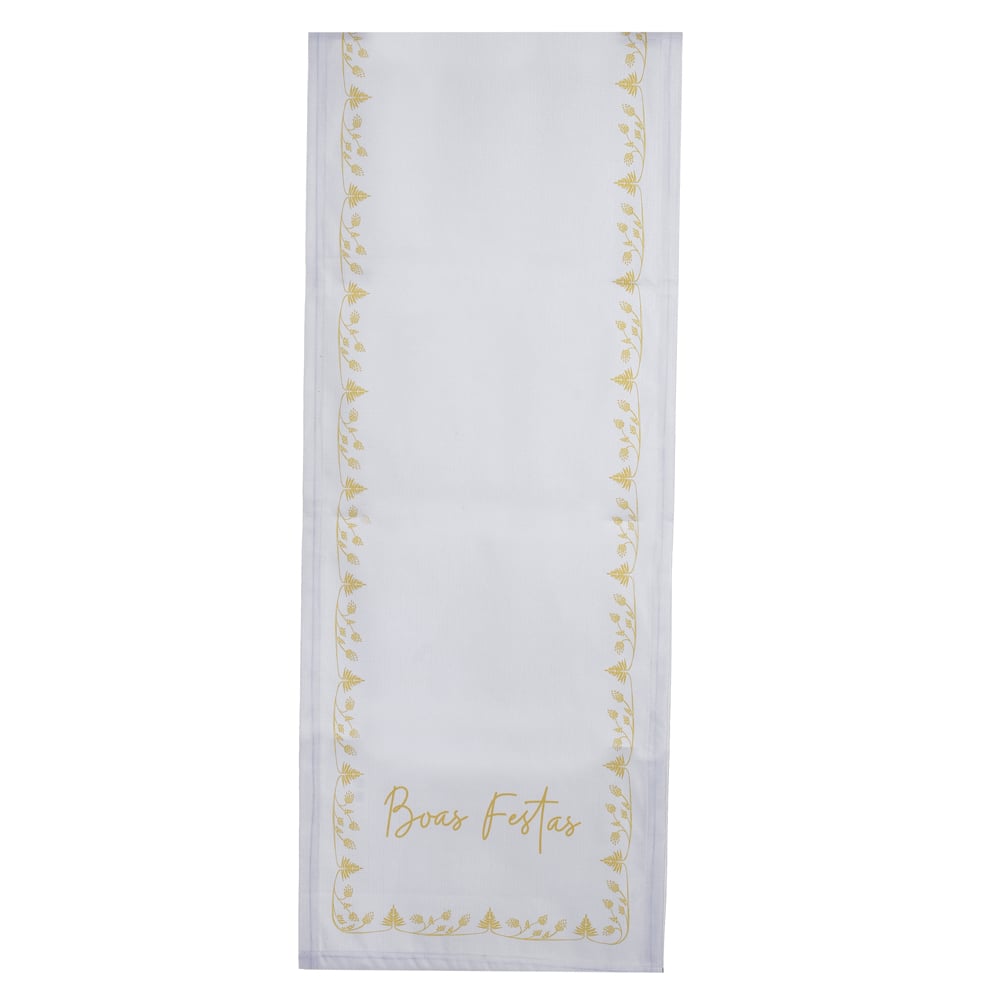NATAL TRILHO DE MESA DOURADO. (BRANCO DOURADO) 2,3mX44cm