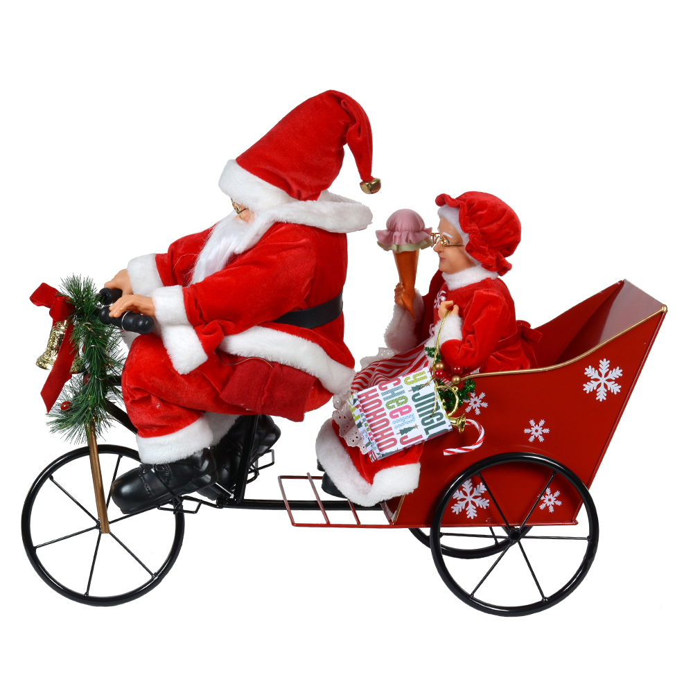 PAPAI E MAMAE NOEL BICICLETA C/LED E SOM (VERMELHO BRANCO) 45X55cm