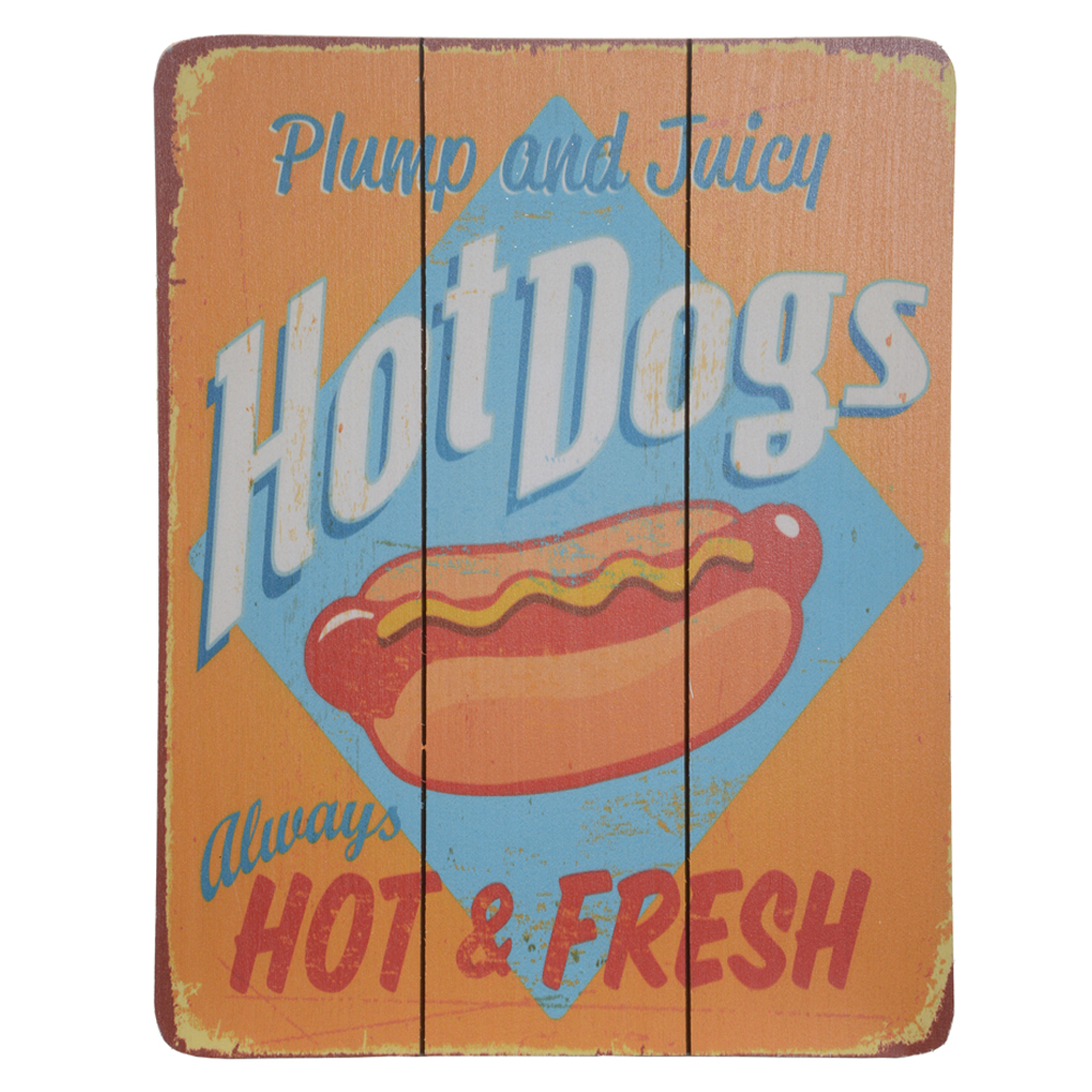 PLACA DECORATIVA MDF HOT DOGS (COLORIDO) 30X40cm