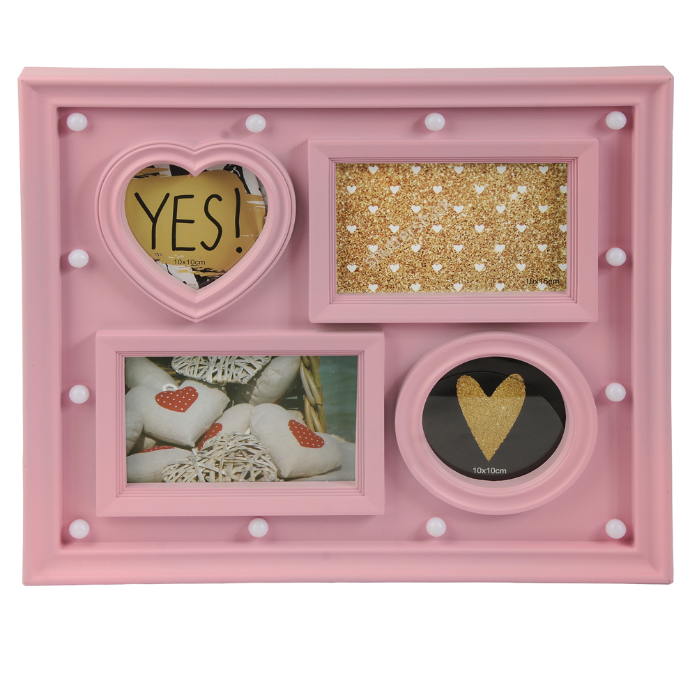 PORTA RETRATO PLASTICO LAMPADA LED C/ 4 FOTOS MURAL (ROSA) 33,5X38cm