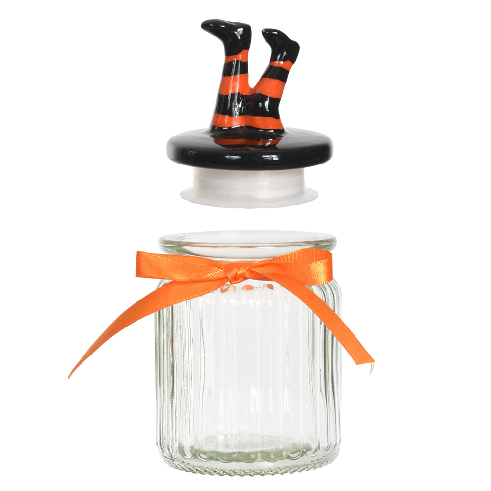 PRESENTEAVEIS POTE COM TAMPA PERNAS BRUXA (PRETO LARANJA) 15,2X7,5X7,5cm