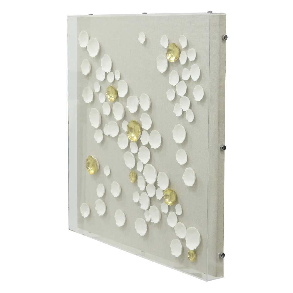 QUADRO DECORATIVO ACRILICO (BRANCO DOURADO) 60X60X5cm