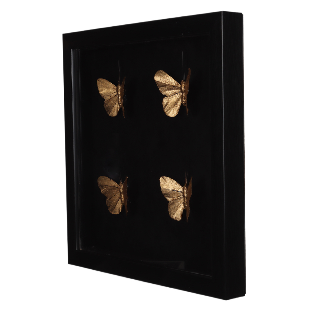 QUADRO DECORATIVO ACRILICO COM BORBOLETA (PRETO DOURADO) 30,2X30,2X3,2cm