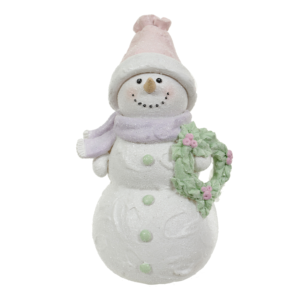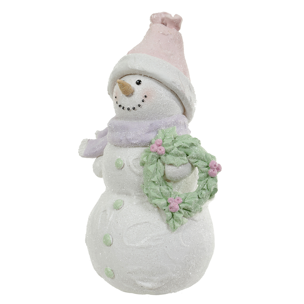 RESINA NATAL BONECO DE NEVE (VERDE ROSA) 18,5X10,5cm