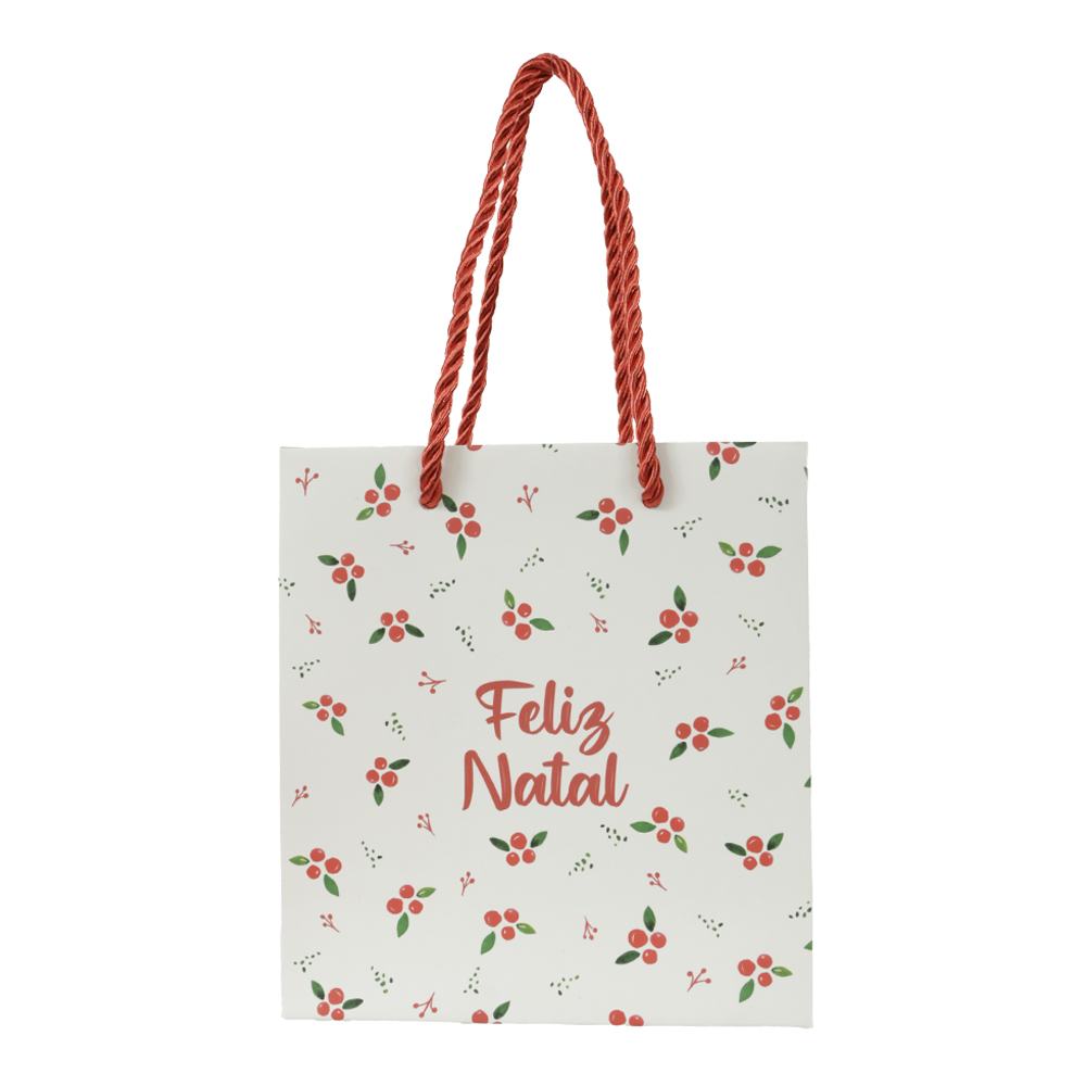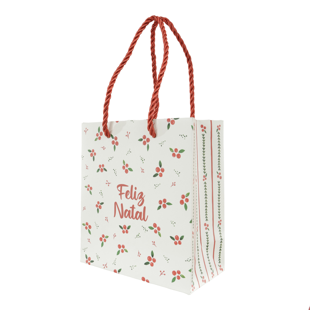 SACOLA DE PAPEL BERRY LISTRAS E POA (VERDE VERMELHO) 15,5X7X14,3cm