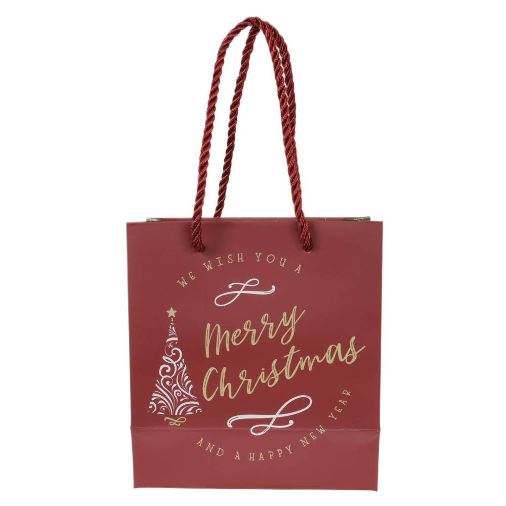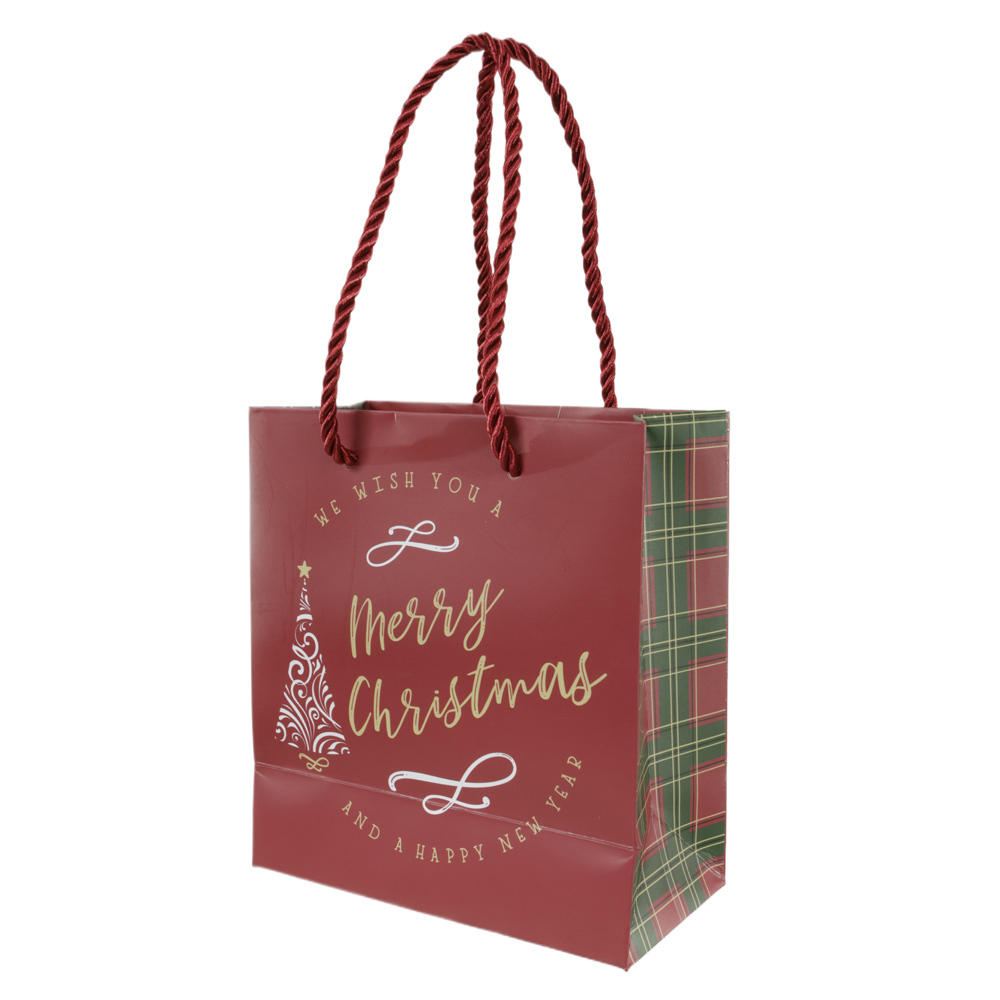 SACOLA DE PAPEL COM HOT STAMPING XADREZ (VERMELHO VERDE) 15,5X7X14,3cm