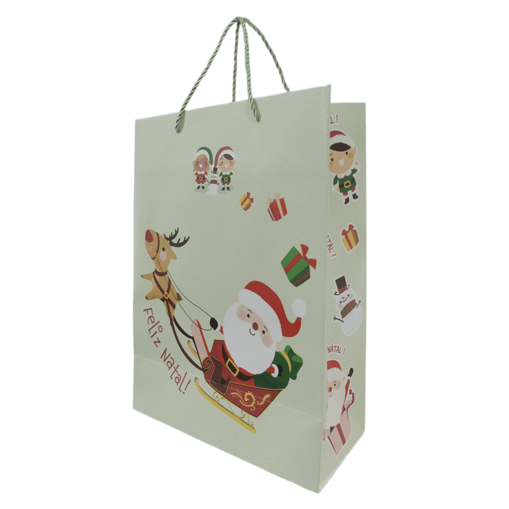 SACOLA DE PAPEL NOEL (VERMELHO VERDE) 32X12X26cm