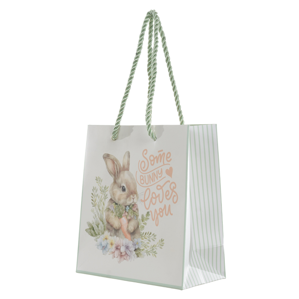 SACOLA DE PAPEL PASCOA (BEGE VERDE) 15,5X14,3X7cm