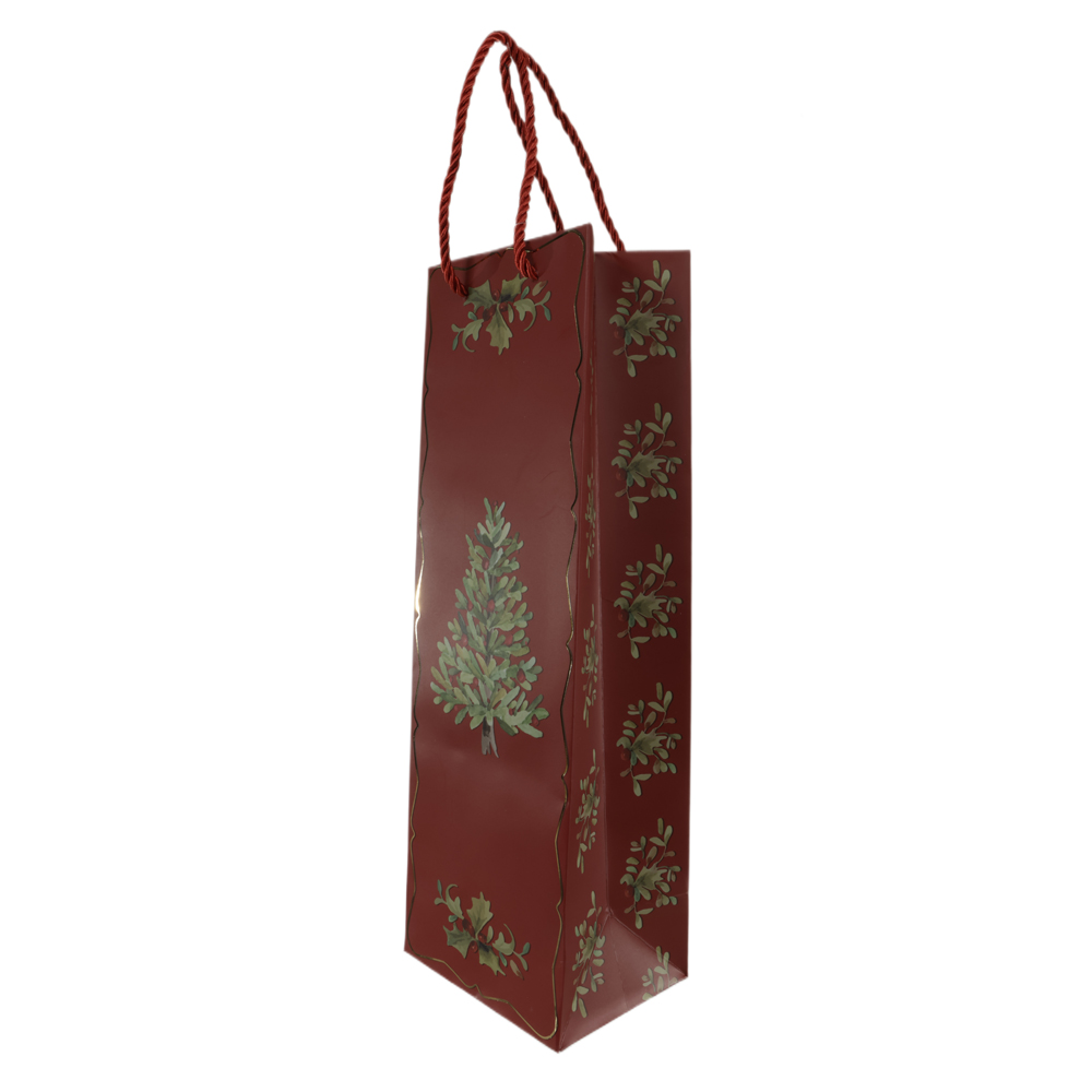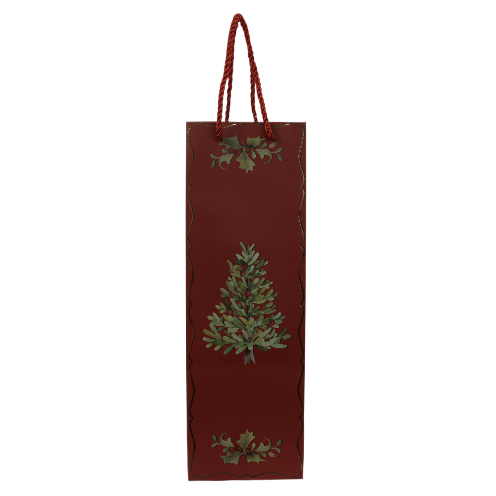 SACOLA DE VINHO COM HOT STAMPING PINHEIRINHO (VERMELHO VERDE) 35X9X11,5cm
