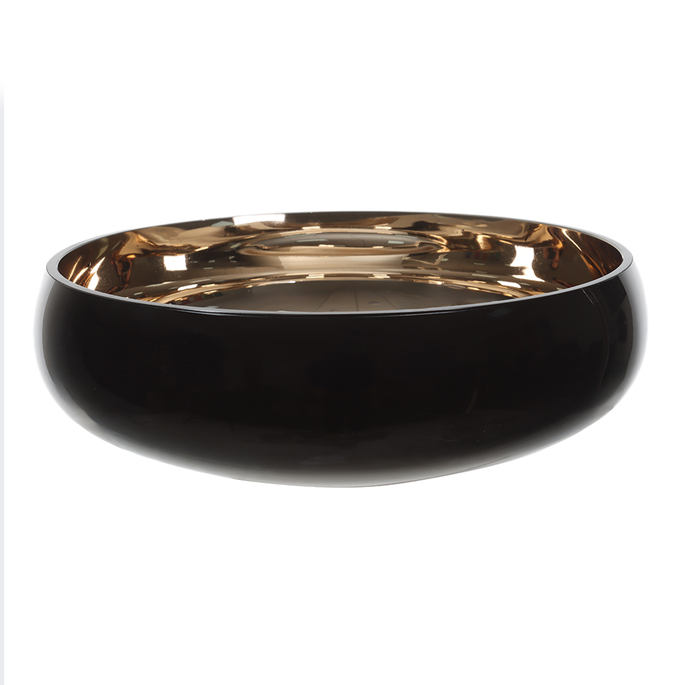 VASO BACIA VIDRO 0,5CM (PRETO DOURADO) 10cm