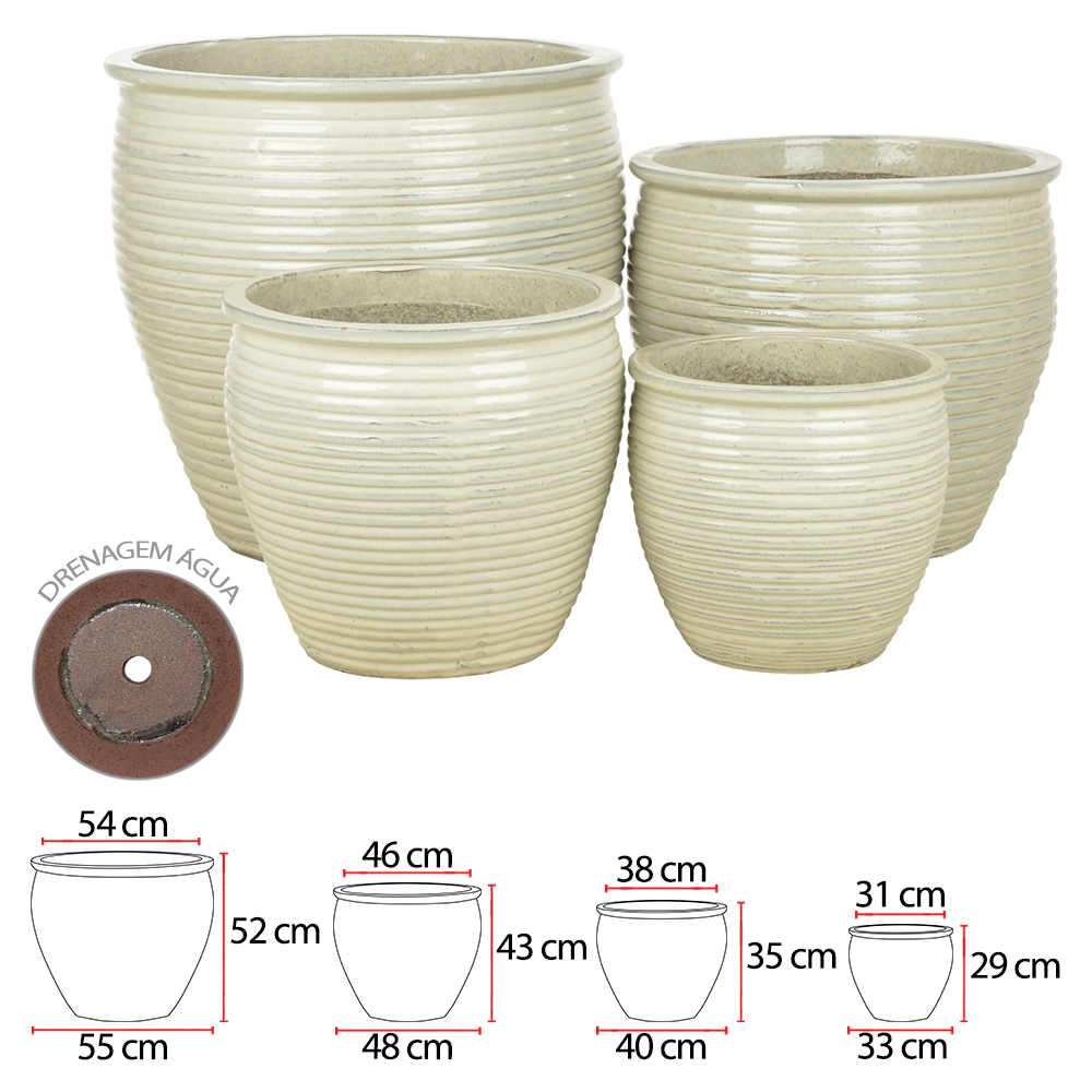 VASO CERAMICA C/4 UNI (BEGE) 52cm