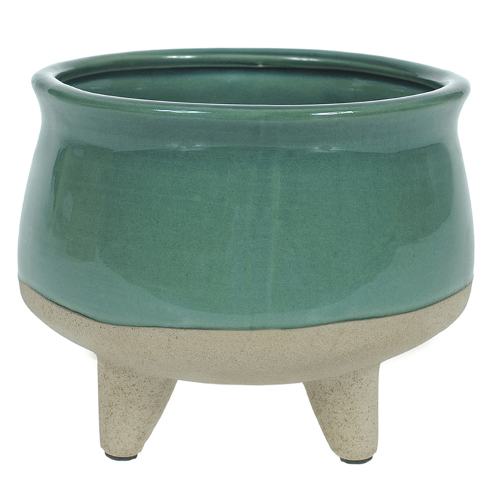 VASO CERAMICA C/PE (TURQUESA) 14cm