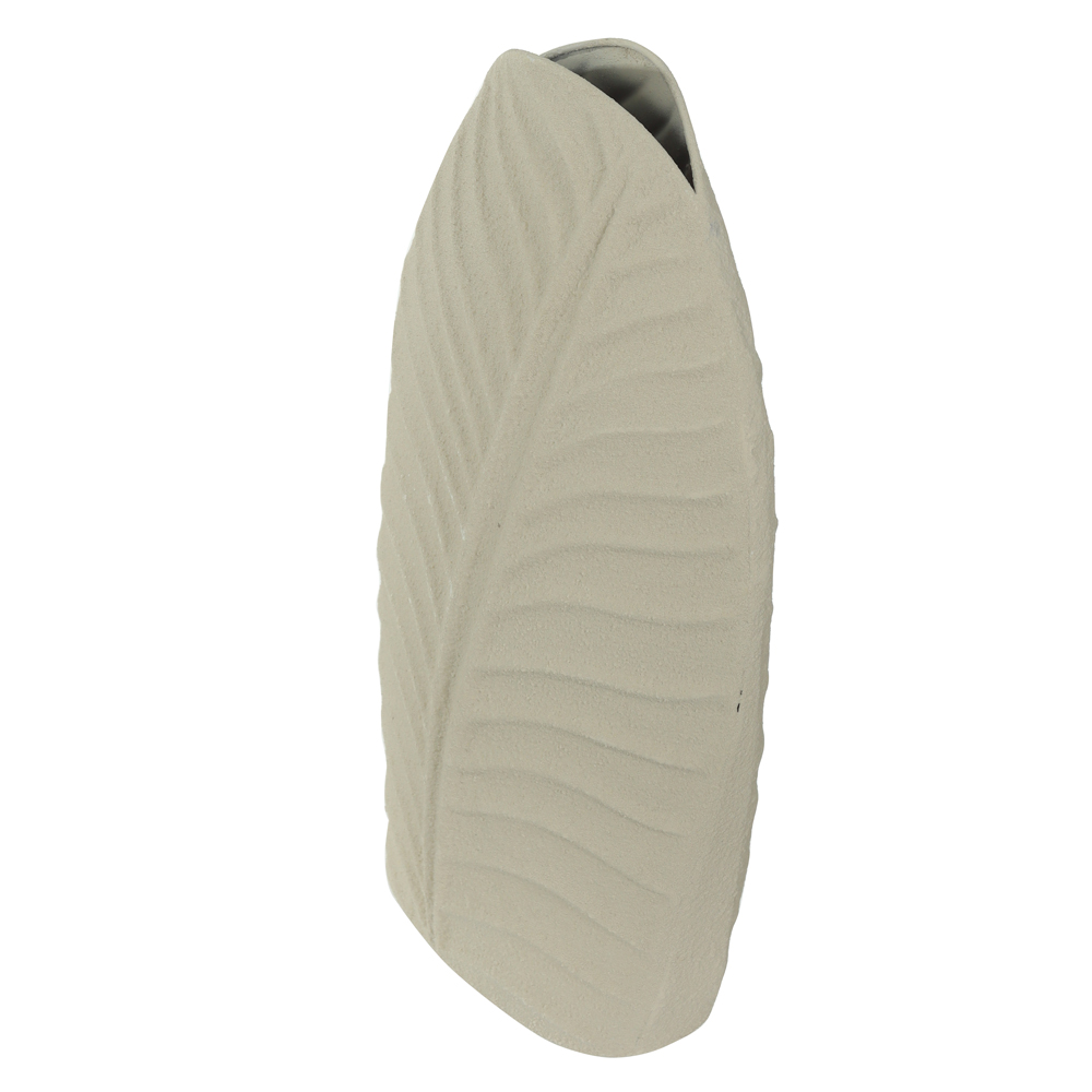 VASO DECORATIVO METAL FOLHA (OFF WHITE) 29,5X18X9,5cm